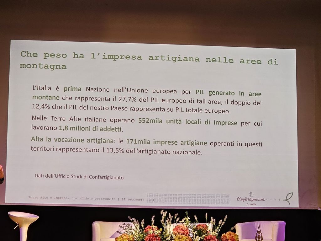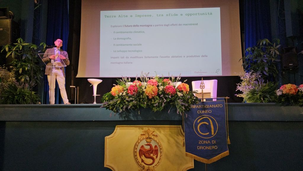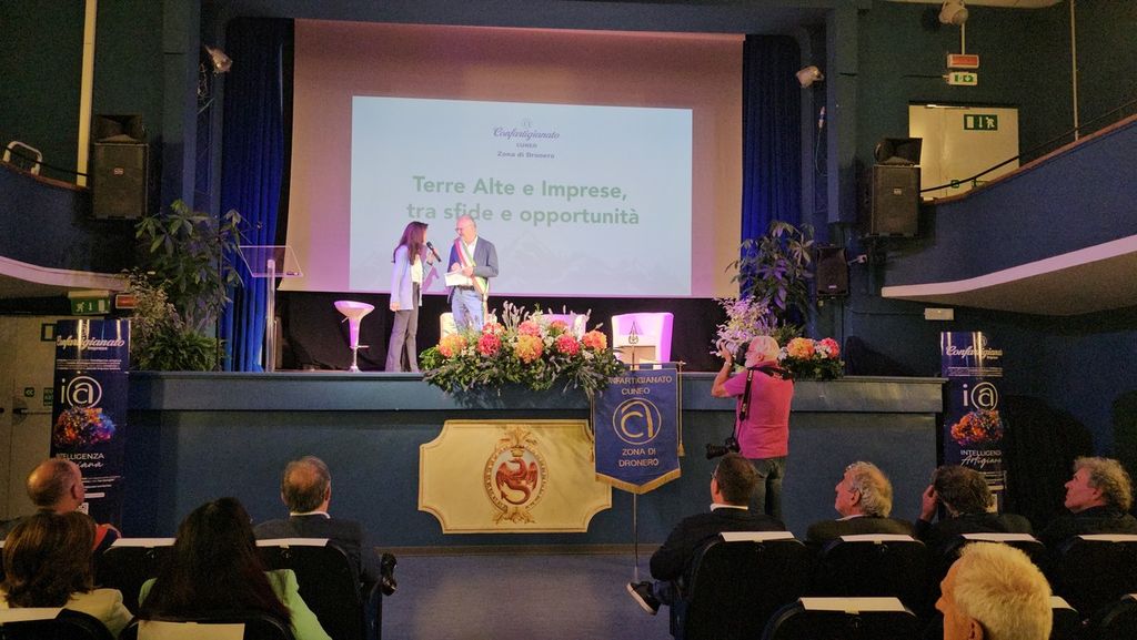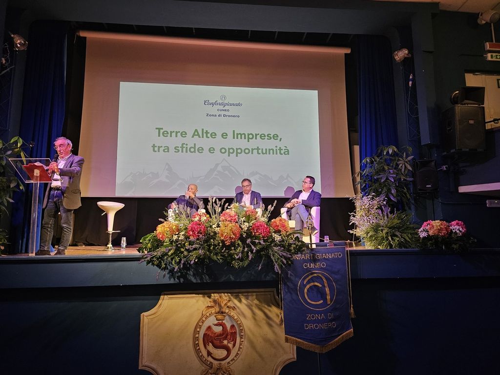 A fare gli onori di casa sul palco del cine-teatro Iris il sindaco Mauro Astesano e il presidente provinciale di Confartigianato Luca Crosetto, che ha introdotto la riflessione sulle terre alte e sulle criticità legate alla mancanza di servizi, infrastrutture adeguate dalle strade alla copertura telefonica e Internet, allo spopolamento, che incide sulla stessa nati-mortalità delle piccole medie imprese artigiane.