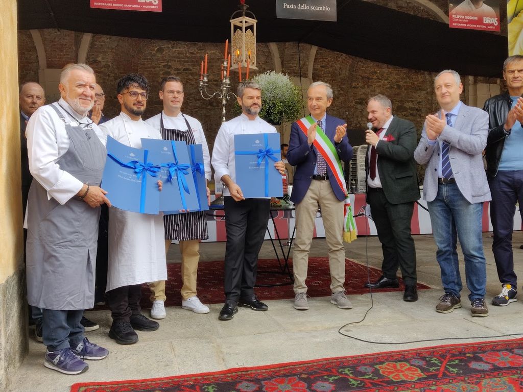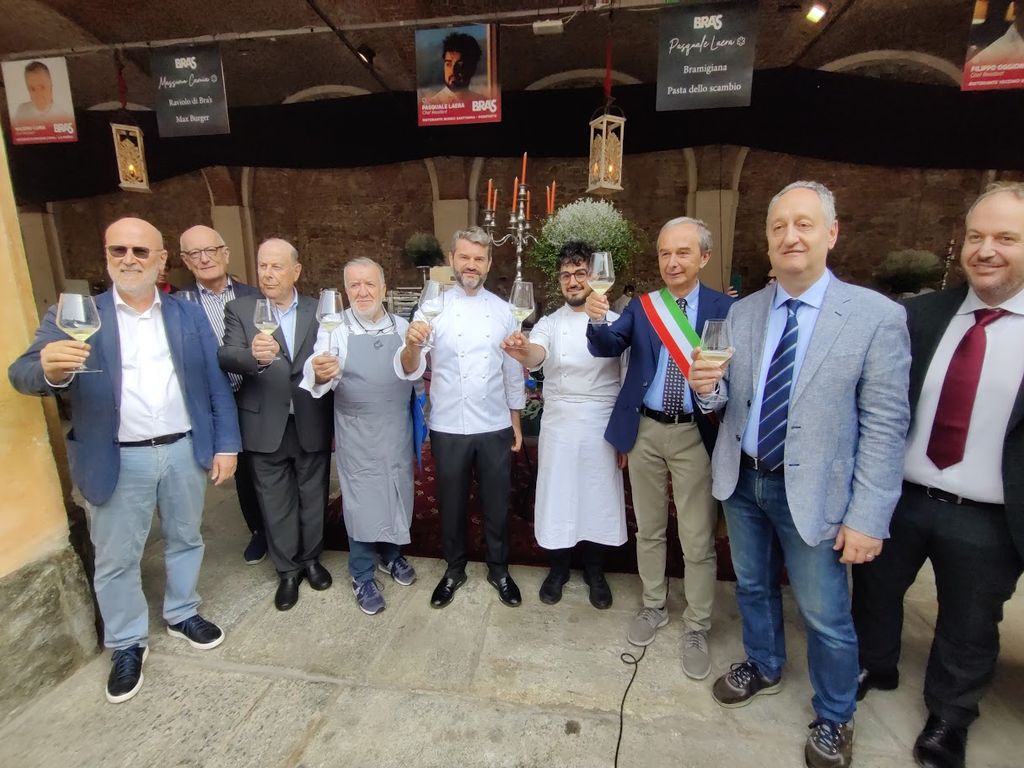 Tra il sindaco di Bra Gianni Fogliato, il direttore di Confcommercio Ascom Bra Luigi Barbero e in compagnia di Massimo Camia, chef coinvolto direttamente in BRA’S, insieme ai colleghi Pasquale Laera e Filippo Oggioni, Enrico Bartolini è apparso a proprio agio e molto orgoglioso del riconoscimento ricevuto.