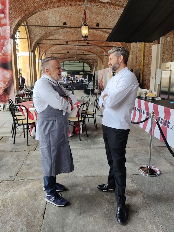 La breve cerimonia di stamane, sabato 21 settembre, sotto l’Ala Stellata nei portici storici di Corso Garibaldi lo ha visto protagonista di un breve incontro con il numeroso pubblico che affolla da ieri le vie dalla città: il cuoco toscano ha raccontato i suoi inizi, le sue “regole” in cucina, il suo stile e la sua avventura nel mondo dell’alta ristorazione. Ha elogiato Davide Boglioli, il giovane chef braidese diventato suo collaboratore e alla domanda “Aprirà prossimamente un locale nel nostro territorio?” ha risposto con un sorriso: