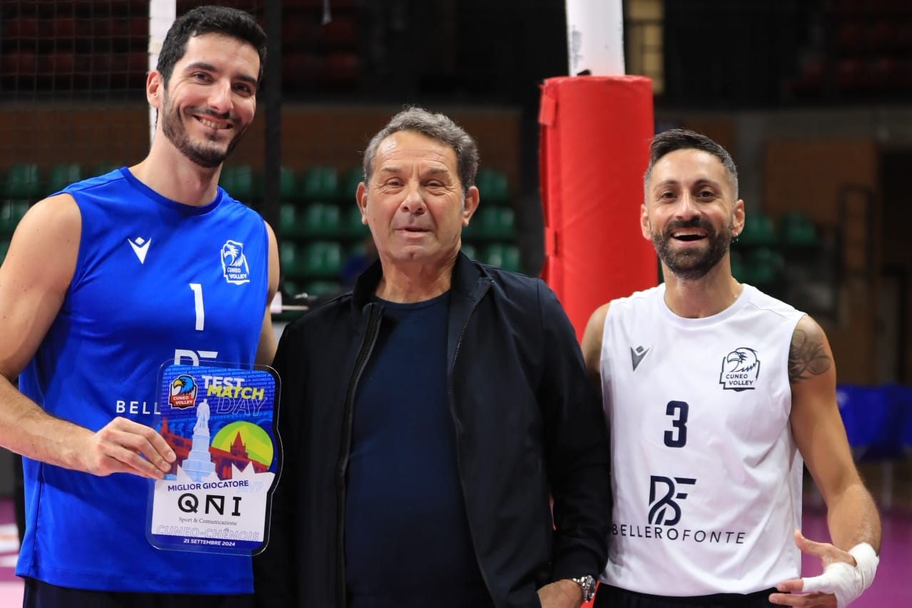 Gli uomini di Matteo Battocchio hanno vinto tutti gli otto set disputati con gli svizzeri. La gara di ieri pomeriggio è terminata 4-0 con parziali 25-20/25-18/25-20/25-21 con l'opposto Giulio Pinali ed il libero Domenico Cavaccini premiato Mvp dell'incontro: ai due è stata consegnata la targa QNI Agenci da Guido Becchis.