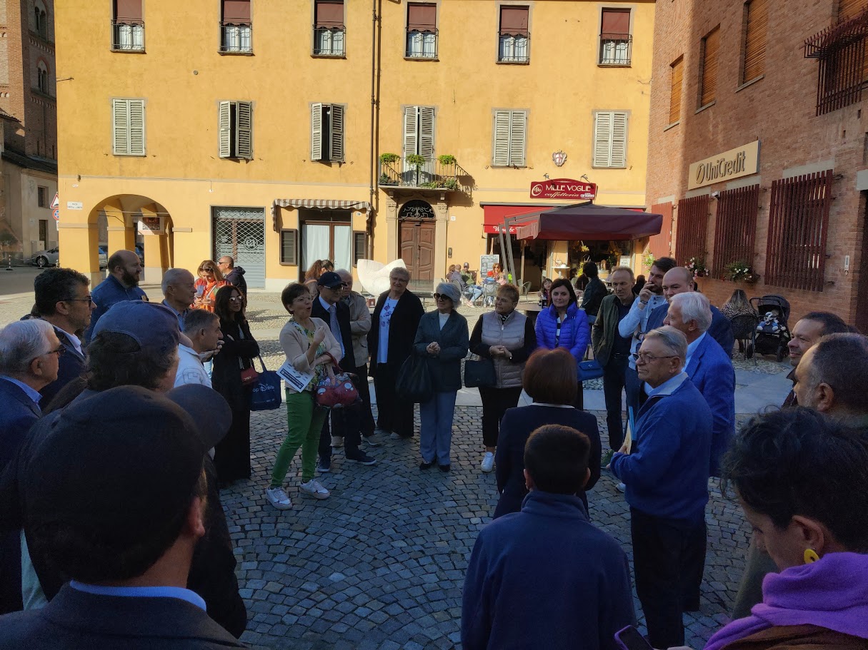 Tornando a ieri, domenica 29 settembre, una sessantina di Soldi ha fatto visita alla città di Cherasco. Una gita di famiglia allargata insomma, nella quale l’attuale segretario del casato Paolo 21°, ha donato una targa ricordo al Comune, in una simpatica cerimonia davanti al municipio.