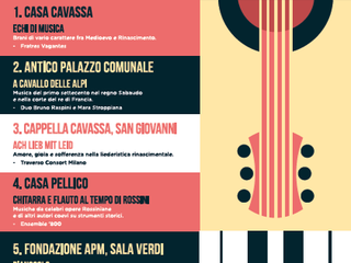A partire dalle ore 15.00 e nei seguenti luoghi, Saluzzo vivrà la "folle giornata" interamente dedicata all'arte musicale, scultorea, architettonica pittorica attraverso l'avvicendamento tra le visite guidate e i momenti concertistici della durata di 20 minuti ciascuno: