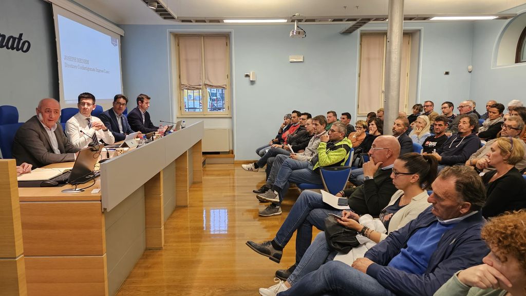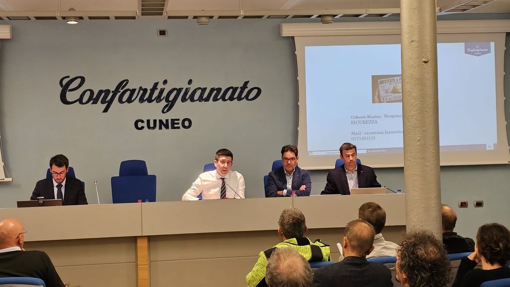 Sala gremita di imprenditori del comparto edile ieri (30 settembre) nella sede territoriale di Confartigianato Cuneo, in collegamento da remoto con tutti gli uffici di zona della provincia, per approfondire la tematica riguardante la “patente a crediti”, la nuova misura entrata in vigore da oggi (1° ottobre) con il compito di rafforzare la sicurezza sul lavoro.