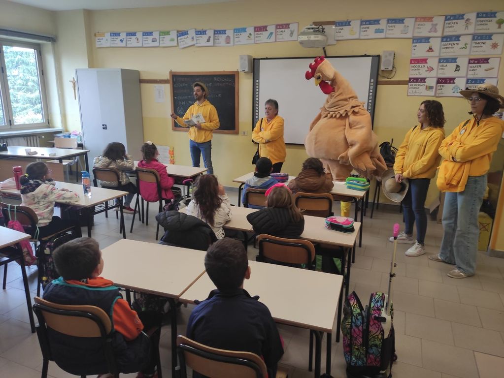 Dopo il Palio dei Borghi di Sanfrè di domenica pomeriggio, gli studenti saranno di nuovo protagonisti lunedì 14 nel Palio dei Ragazzi. Mascotte tradizionale di entrambe le manifestazioni è la Gallina, che è entrata in classe per promuovere la partecipazione alle diverse iniziative e per portare tra i banchi l’allegria della sagra.