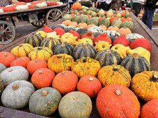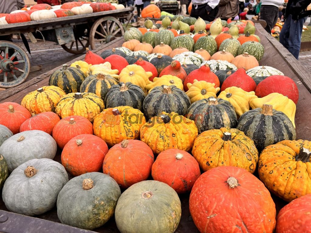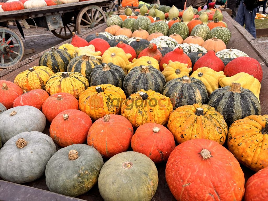 Tutte le zucche sono coltivate a Piozzo ma i semi provengono da ogni angolo del mondo, verranno esposte su carri agricoli e si potranno acquistare nelle centinaia di stand allestiti anche con prodotti derivati della zucca, sia alimentari che non.