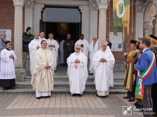 Per l’ingresso del nuovo parroco, il benvenuto del sindaco Gatto sul piazzale del santuario e poi una santa messa iniziata da don Claudio Carena vicario generale della Diocesi e da padre Fiorenzo Cavallaro superiore provinciale degli Oblati di San Giuseppe e poi proseguita da don Ravera.