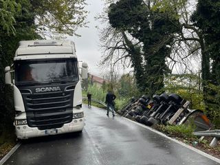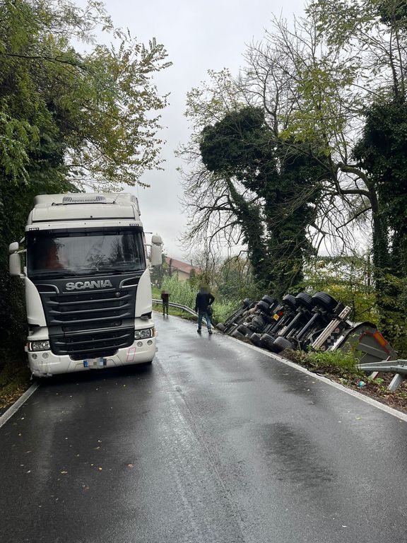 Camion si ribalta sulla provinciale tra Sale Langhe e Sale San Giovanni: conducente illeso
