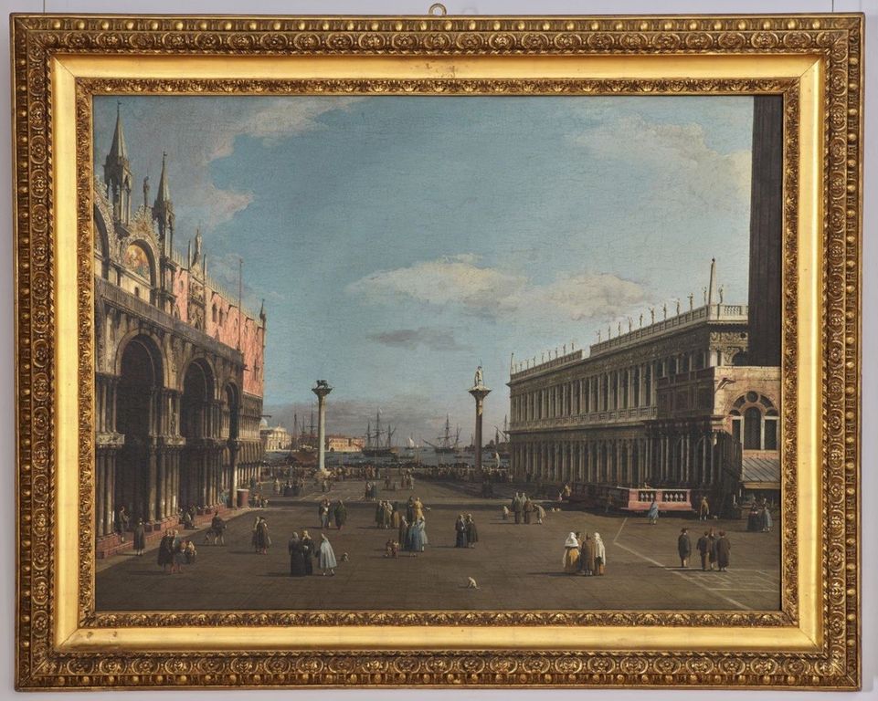 La rappresentazione di Venezia è affidata alle pennellate di Giovanni Antonio Canaletto, di cui la mostra riunisce quattro capolavori. Il pittore veneziano unisce una profonda conoscenza della prospettiva con un approccio innovativo allo schema compositivo della veduta, offrendo una propria interpretazione creativa del genere. Riservando una forte attenzione all’effetto pittorico, Canaletto condensa in opere come Veduta di Venezia con la Piazzetta (1741 ca) e Veduta di Venezia con il Ponte di Rialto (1735-1740 ca) un’immagine di Venezia carica di dettagli e caratterizzata da una grande nitidezza descrittiva, unita a una forte sensibilità luminosa e atmosferica.