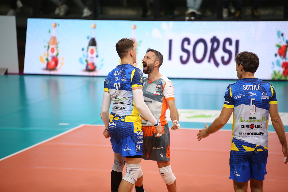 Con queste premesse Cuneo ha finalmente sfatato il tabù Delta Group, piegata in 4 set (25-19/23-25/25-10/25-17). Grande protagonista di giornata l'estone Karli Allik, che ha intascato un bottino personale di 8 aces ed il 57% in attacco: "Giocavo di fronte ai miei genitori che sono venuti a trovarmi dall'Estonia - ha raccontato Karli a fine gara - e questo mi ha dato tanta forza. Sono molto contento".
