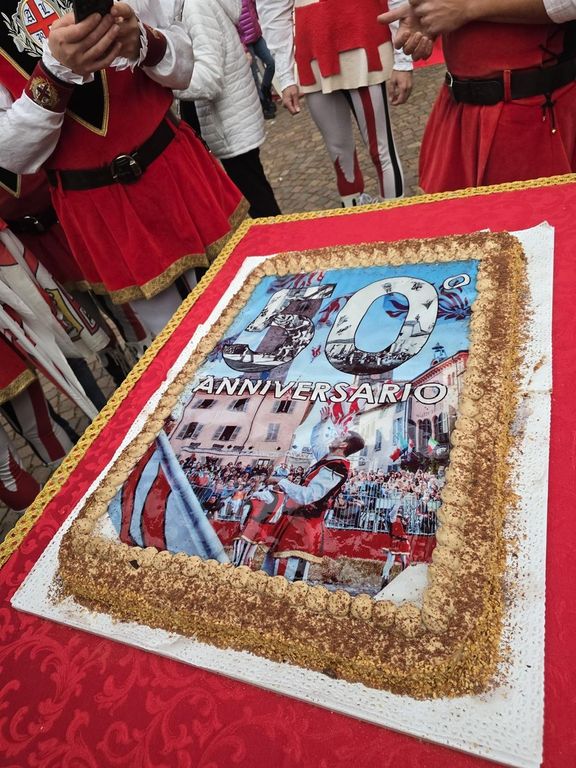 Si sono chiusi con il taglio di una grande torta celebrativa preparata dai ragazzi di Apro Accademia Alberghiera e con il brindisi offerto dal Consorzio di tutela dell’Asti Docg e del Moscato d’Asti i festeggiamenti per i 50 anni del Gruppo sbandieratori Città di Alba.
