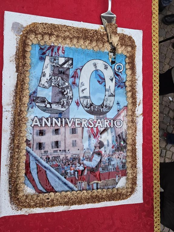 Per celebrare degnamente la ricorrenza dei 50 anni, in concomitanza con il Festival della Bandiera, di fronte al sindaco Alberto Gatto, al presidente del consiglio comunale Maurizio Marello, al consigliere Emanuele Bolla e al presidente della Giostra delle Cento Torri Luca Sensibile, si sono esibiti i gruppi che hanno ispirato il “Città di Alba”, l’Asta di Asti e il gruppo sbandieratori e musici “Principi d’Acaja” di Fossano.