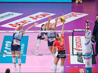 Inizio del terzo parziale di nuovo equilibrato, con Milano che prova ad allungare ma viene sempre contenuto dalle Gatte. Solo sul 9 pari le avversarie si portano 9-15 e Bakodimou rileva Kapralova. Le Gatte non mollano ma Milano mantiene il vantaggio acquisito e chiude 18-25 portandosi sul 1-2.