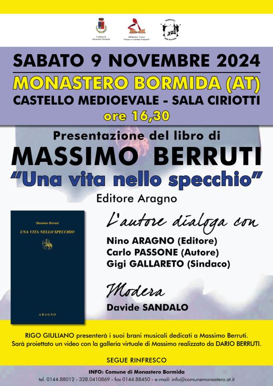 Il 9 novembre, alle ore 16:30, lo storico Castello Medioevale di Monastero Bormida ospiterà un evento culturale di grande rilievo: la presentazione del volume "Una Vita Nello Specchio", la biografia di Massimo Berruti, edita da Aragno Editore.