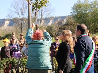 Il corteo si è spostato presso l’area riqualificata che ora ospita il "Giardino del ricordo", realizzato grazie al bando distruzione di Fondazione CRC, per il posizionamento delle targhe commemorative.