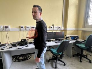 "Questa è la nostra sala di Protezione Civile". Una stanza, telefoni, cartellini con la lettera F accompagnati da un numero che suddividono le aree (ben 14) di intervento, la sala radio a poca distanza, computer, sedie e un tavolo rotondo con al centro una colonna che ha monitor in ogni lato.