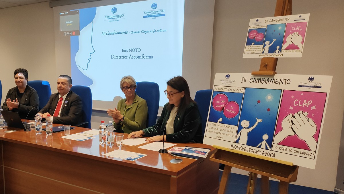 “Siamo convinti - sottolinea il Presidente Luca Chiapella - che la violenza, sia essa verbale, psicologica, economica, fisica o sessuale, vada contrastata e superata attraverso uno sforzo collettivo, unendo uomini e donne in un impegno condiviso che poggia su valori di rispetto e solidarietà. Confcommercio-Imprese per l'Italia, con il progetto “Sii cambiamento, quando l’impresa fa cultura”, ha già intrapreso un percorso importante, dando vita a un anno ricco di iniziative che ci hanno permesso di portare questo messaggio nei territori e nelle comunità. Grazie al supporto e alla partecipazione di enti pubblici e privati, questo progetto è un esempio tangibile di come l'impresa possa e debba farsi promotrice di una crescita culturale che vede nel rispetto e nella parità i suoi pilastri fondamentali. Oggi sono lieto di annunciare il lancio della prima campagna nazionale dedicata alla prevenzione delle molestie sul luogo di lavoro, un’iniziativa progettata e realizzata da Terziario Donna – Confcommercio Cuneo con il supporto della divisione DE&I (Diversità, Equità e Inclusione) di UpperDeck e di NoSignal ETS. Questo progetto rappresenta il risultato finale di un intenso percorso di confronto e collaborazione, che ha visto coinvolte attivamente le Ascom territoriali e Terziario Donna in una straordinaria attività di networking. La campagna di comunicazione, concepita con l’obiettivo di proporre una riflessione profonda e concreta sul tema della violenza di genere e della necessità di creare ambienti di lavoro sicuri, rispettosi e inclusivi – conclude il Presidente Chiapella”.