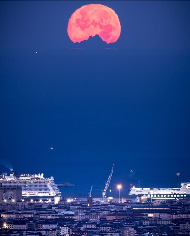 Nella fotografia pubblicata su Instagram si vede sempre il solito Monviso sbucare dal solito Mar Ligure. Ma questa volta c'è un elemento di novità. Si tratta della luna (o meglio della superluna del castoro) perfettamente allineata alla punta del nostro Re di Pietra. Un omaggio, forse, allo scatto di Valerio Minato, condiviso il giorno di Natale dal sito della Nasa, che mostrava il Viso, la Basilica di Superga e la luna perfettamente allineati.