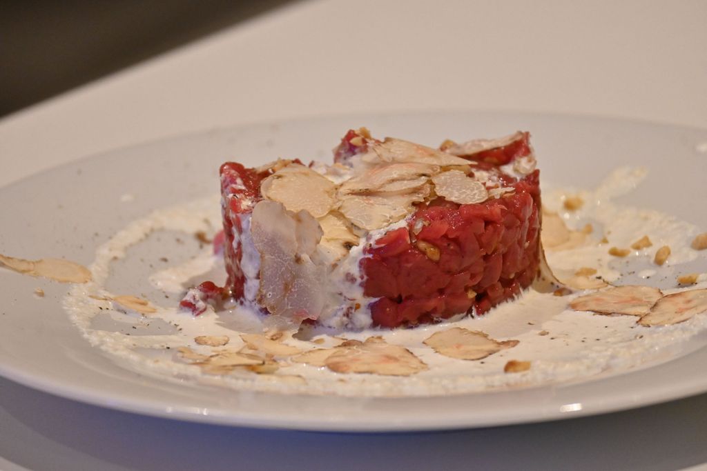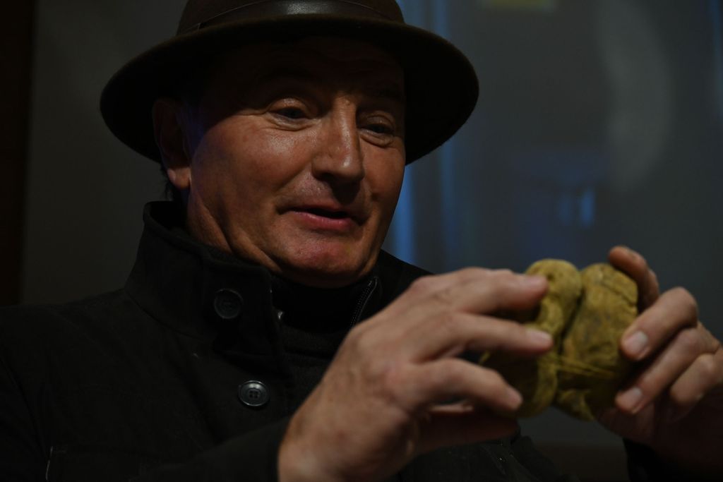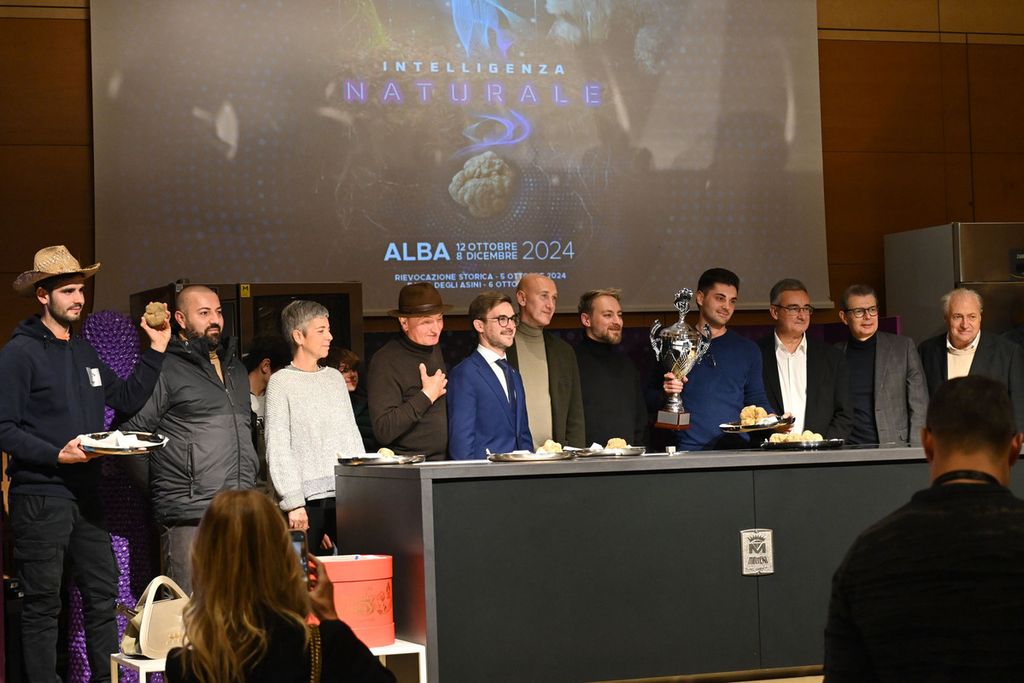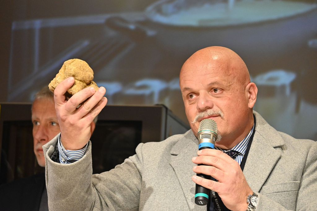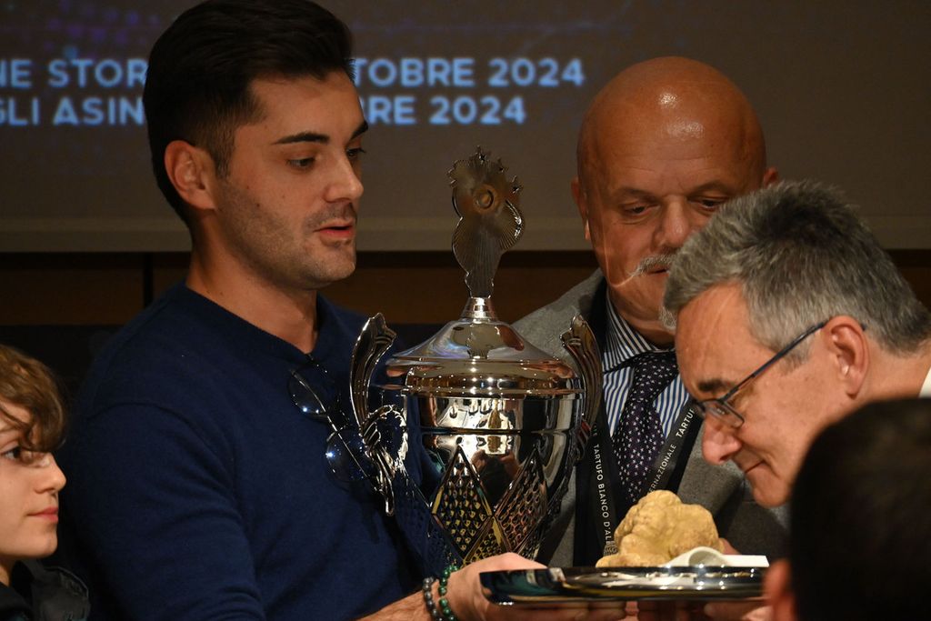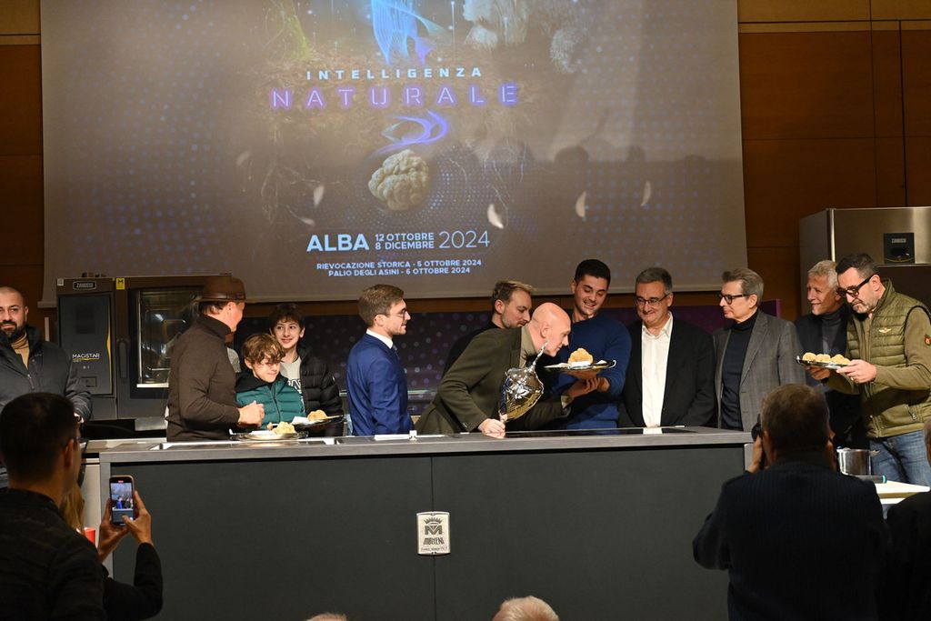 In gara c’erano anche un piatto da circa 800 grammi proposto da Curzietti, il classico “tartufo-gemello” molto apprezzato dagli esperti, composto da due tartufi diversi adesi lungo un unico piano di congiunzione, e ancora presentati da Curzietti: rispettivamente 378 e 305 grammi di densità importante, plurilobati e dal sentore di aglio molto marcato, un esemplare plurilobato da 280 grammi presentato dalla famiglia Ronzato e infine, ultimo in concorso per dimensione – ma non per questo meno buono – il Tartufo Bianco d’Alba da 148 grammi proposto da Sebastiano Tartufi Grand Cru, molto strutturato e con un’intensa fragranza di crosta di pane, “firmato” dal cane che lo ha scovato con un’unghiata. Tutti esemplari di grande pregio, ciascuno con la propria storia.