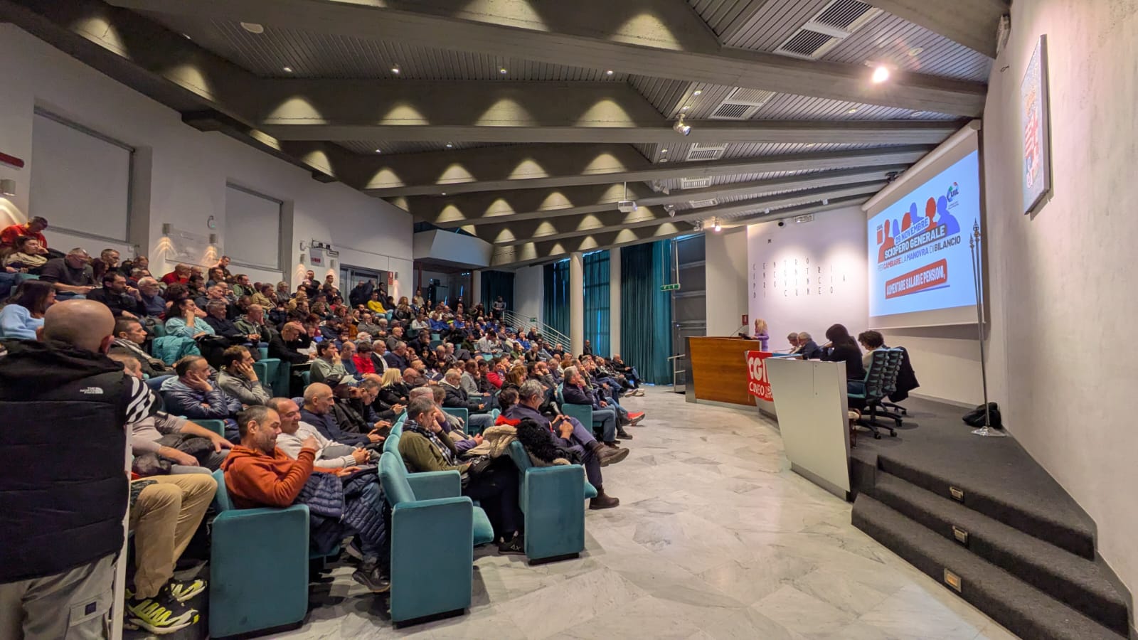 L'assemblea si è svolta nella sala Einaudi del Centro Incontri della Provincia. Presenti sul palco il segretario generale UIL Cuneo-Asti Armando Dagna, il segretario generale CGIL Piemonte Giorgio Airaudo e il segretario generale CGIL Cuneo Piertomaso Bergesio. Sono poi intervenuti delegate e delegati CGIL e UIL.
