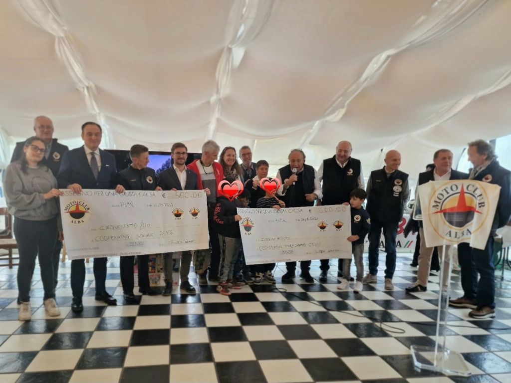 "Assieme ai numerosi soci presenti (120) - dicono dal sodalizio -, ci sono venuti a trovare diversi personaggi di spicco Fmi e presidenti di moto club amici, presenti anche l’amico storico del Moto Club Alba il presidente della regione Piemonte Alberto Cirio e il sindaco di Alba Alberto Gatto che, onorandoci della loro presenza, hanno partecipato alla consegna dei contributi di beneficenza che il nostro sodalizio ha consegnato a due gruppi presenti al pranzo. Infatti, invitati speciali, la cooperativa sociale Alice e la cooperativa Paradigma onlus i due sodalizi si occupano di bambini con dei problemi famigliari...e il Moto Club Alba con il suo piccolo contributo spera di rendere più agevole la loro permanenza nelle strutture gestite da queste due meritevoli associazioni".