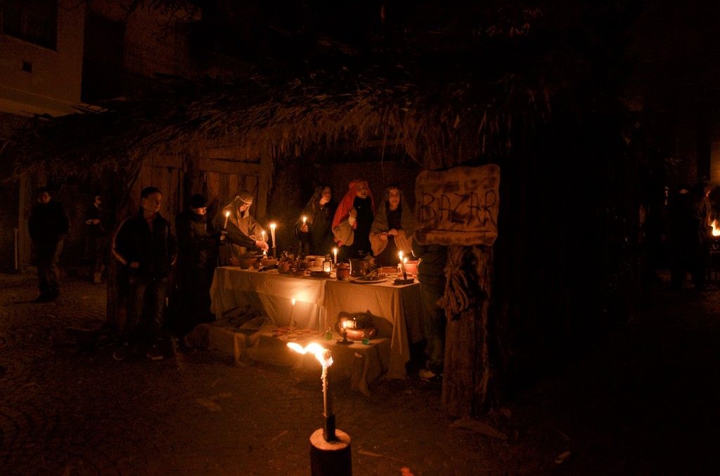 Un progetto ambizioso, perché già dalle prime edizioni, ha trasformato un antico borgo in un atmosfera di 2000 anni fa. Niente luci per le strade, solo torce e nulla dell’attuale modernità deve disturbare la rappresentazione. Il lavoro di allestimento inizia mesi prima, in autunno, costruendo le capanne, allestendo garage e locali che i residenti offrono agli organizzatori per allestire vecchie botteghe. Poi si preparano le torce, unica illuminazione concessa; ore, settimane, mesi di lavoro sono necessari per allestire il teatro che ospiterà la rappresentazione della Natività. Il Presepe vivente non ha un vero regista ma è creato da attori non professionisti che impersonano in modo naturale tutte le anime della Sacra Rappresentazione della Natività. Gli attori sono gli abitanti del paese e dei paesi vicini i giovani e gli anziani. Giuseppe e Maria sono scelti dal direttivo della Pro Loco; a volte il Bambino Gesù è interpretato dall’ultimo nato nell’ anno. Una fedele ricostruzione del passato dove il fabbro forgia il ferro incandescente, il vasaio lavora al tornio modellando l’argilla, i pastori attraversano il paese con il proprio gregge. Si possono vedere antichi bazar orientali o figuranti in costume arabo a pochi passi da artigiani con abiti legati alla tradizione contadina locale.