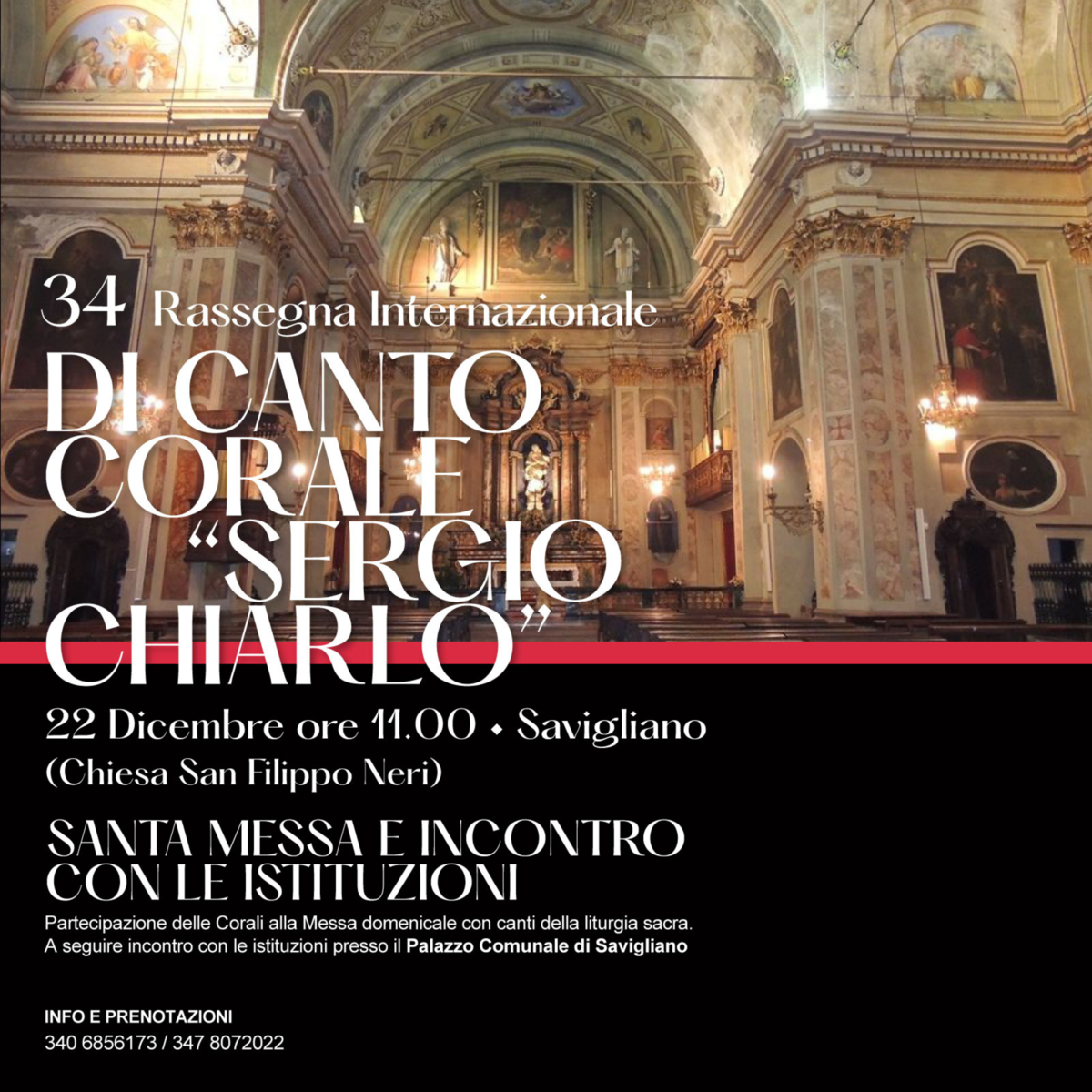 Adesso vi invitiamo a prenotare i vostri posti all'interno della 34° Rassegna Internazionale di canto corale “Sergio Chiarlo” in programma dal 19 al 22 dicembre.