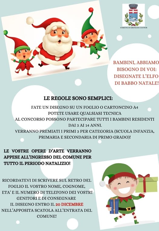 I bambini sono chiamati a scatenare la loro fantasia con il concorso "Disegna l’elfo di Babbo Natale". La sfida è semplice: creare il proprio elfo su un foglio A4 e consegnarlo al Comune entro il 20 dicembre. I disegni migliori, scelti da una giuria, saranno premiati e tutti verranno esposti per il periodo natalizio. Un’occasione per colorare le feste con il tocco unico della creatività infantile.