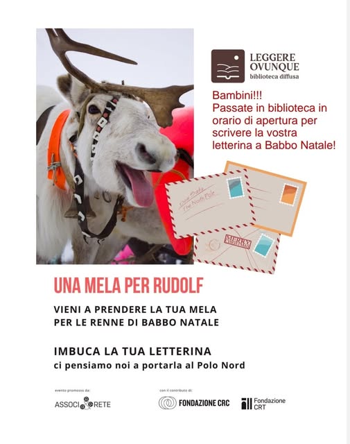 In biblioteca, invece, prende vita un altro momento magico. I piccoli cittadini possono scrivere la loro letterina per Babbo Natale con l’aiuto delle volontarie. Ma non è tutto: Rudolf, la famosa renna, aspetta un regalo speciale! Ogni bambino potrà portarle una mela, simbolo di affetto per le sue instancabili corse tra le stelle. Le letterine saranno poi spedite direttamente al Polo Nord, per far arrivare a destinazione ogni desiderio. Gli orari di apertura saranno: lunedì 18 - 19.30, mercoledì 15-18, sabato 9.30 - 12.