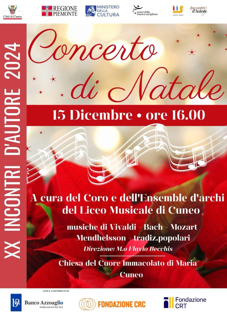 Il Concerto di Natale è un'occasione per i ragazzi di dimostrare i successi formativi raggiunti durante l'anno scolastico, per le famiglie di prenderne atto emozionandosi e per i cittadini di godere di uno spettacolo musicale di qualità con un accesso facilitato. Un appuntamento che replica con novità e integrazioni dopo quello che l'anno scorso nella chiesa del Sacro Cuore di Cuneo. Quest'anno, in alcuni brani accompagnerà al pianoforte Lorenzo Martini, ex alunno del Liceo musicale, attualmente docente dell'APM di Saluzzo e collaboratore del Conservatorio Ghedini di Cuneo.
