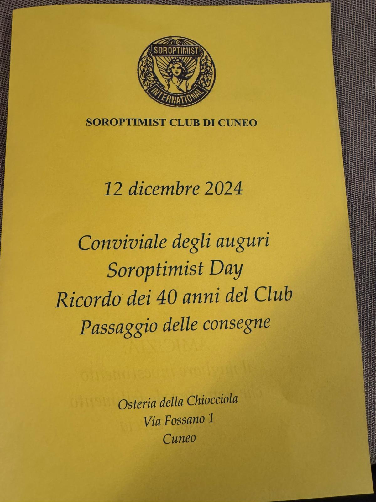 Alla Chiocciola, ristorante cuneese, ieri sera una grande festa per i 40 anni del Soroptimist, associazione femminile tra le più diffuse e influenti al mondo. La serata ha coinciso con il passaggio di consegne tra la presidente uscente Elena Cavallo e quella che dal 1° gennaio guiderà il sodalizio, Silvana Martino, imprenditrice di Mondovì. Un momento di bilanci e di emozioni.