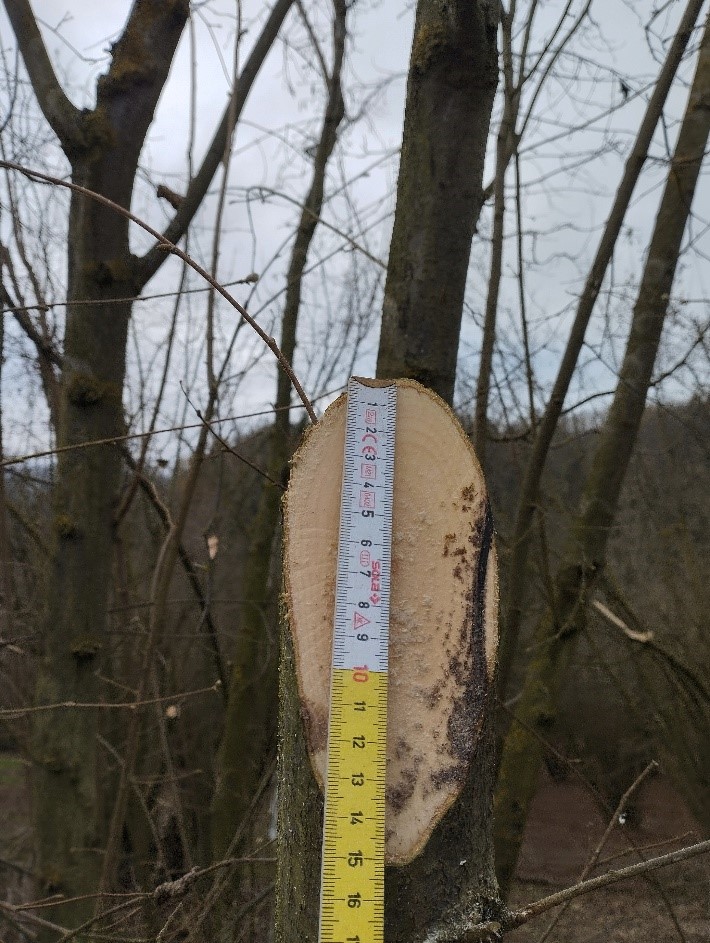 Una prima criticità riscontrata durante le operazioni di potatura sono state le dimensioni dei tagli, dove in molti casi trattandosi di piante adulte, le branche presentavano diametri di notevoli dimensioni, anche oltre i 10-15 cm (Fig.3) motivo per cui sono stati prontamente trattati con mastici rameici per limitare il rischio di penetrazione di patogeni fungini.
