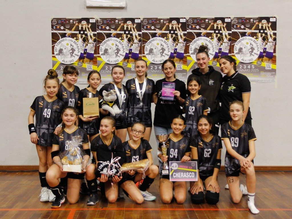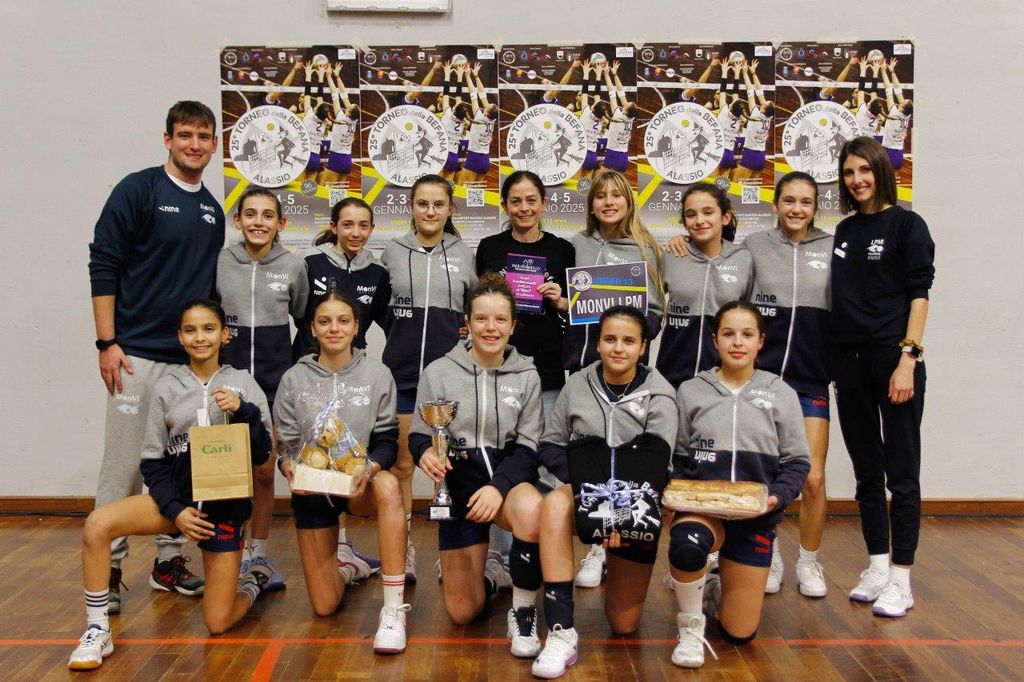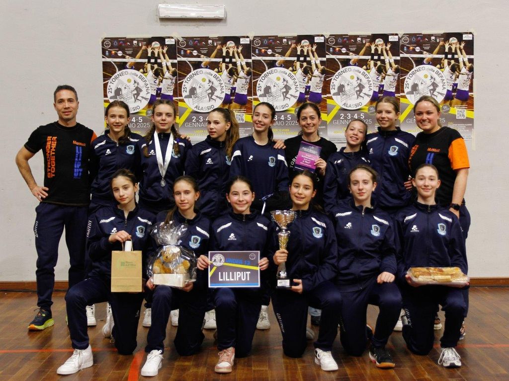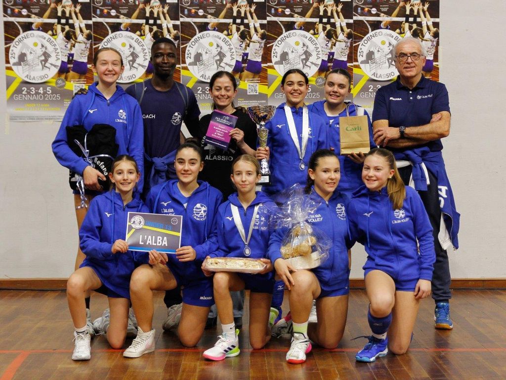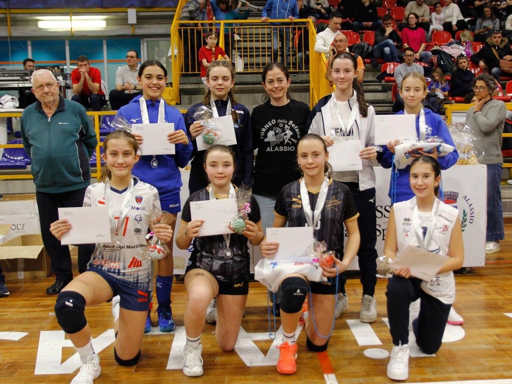 Nella giornata caratterizzata dalla prestigiosa e graditissima presenza dell’ex campionessa del mondo Paola Cardullo, il 25° Torneo nazionale della Befana di pallavolo giovanile (98 squadre iscritte nelle cinque fasce d’età, record) ha assegnato, davanti a un folto pubblico, i primi due titoli: bis per L’Alba Volley nell’Under 13 femminile e ritorno al successo nella categoria Under 12 mista per una formazione, Monvi Bam Vicoforte Ceva, che fa parte della galassia della Pallavolo Mondovì di A2 (aveva già fatto centro nel 2023). Delle sei compagini salite sul podio, cinque rappresentanti piemontesi e una ligure.
