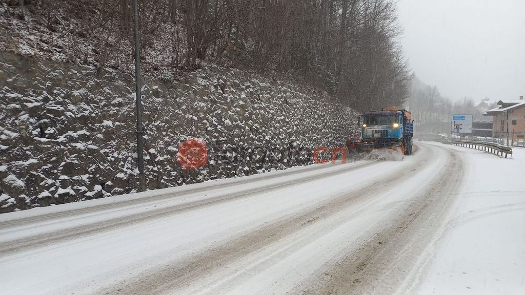 In Valle Stura, così come a Limone Piemonte, la neve è già ben visibile sul manto stradale e sono già in funzione i mezzi spazzaneve per ridurre al minimo rallentamenti al traffico e alla viabilità.