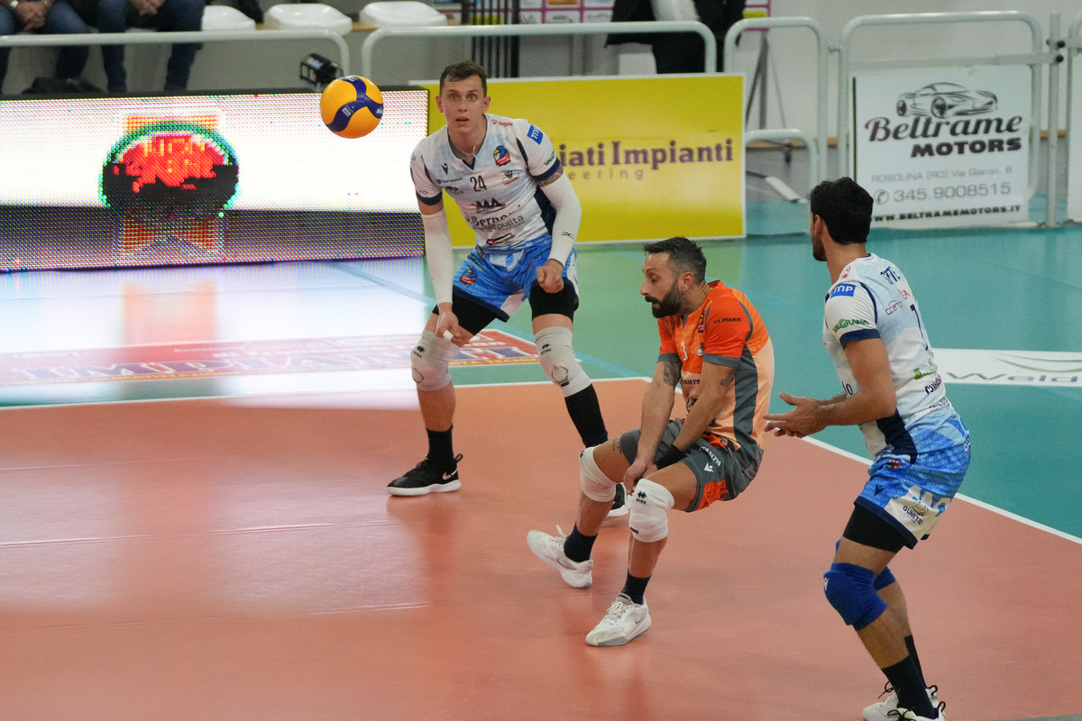 Marco ha stretto i denti e con il cuore gonfio di dolore ha voluto esserci ugualmente a Porto Viro. Segno di grandissima professionalità, che da solo gli sarebbe valso l'applauso di compagni ed avversari. Ma no, Marco Volpato ha fatto di più: con una prova monstre si è aggiudicato il premio di Miglior Giocatore dell'incontro, trascinando i compagni alla vittoria per 1-3 (23-25/20-25/25-17/22-25) contro la delta group Porto Viro. Successo dedicato al caro papà, che sarà seppellito domani nella sua Vicenza.