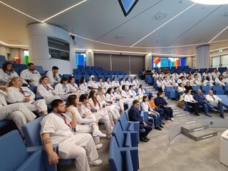 Alla cerimonia erano presenti anche tutti gli studenti del 2° anno, che hanno iniziato il proprio tirocinio nel mese di dicembre e che si affiancheranno ai colleghi più giovani per esser loro da guida e supporto.