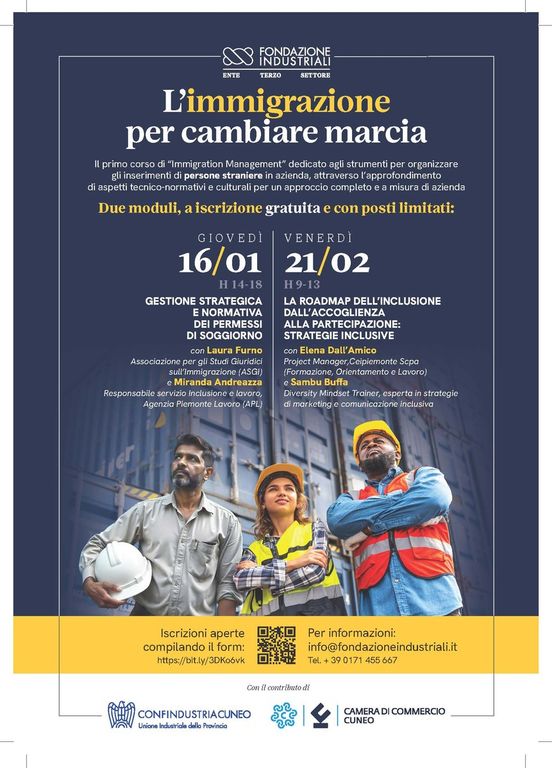 Per accompagnare le aziende in questa direzione, Fondazione Industriali Ets propone il primo percorso di “Immigration Management” dedicato agli strumenti per organizzare gli inserimenti di persone straniere in azienda, attraverso l’approfondimento sia di aspetti tecnico-normativi sia di aspetti culturali, fornendo così un approccio completo, a misura di azienda. Il corso, gratuito, si articola in due moduli, dedicati a esaminare i diversi aspetti della materia con professionisti del settore.