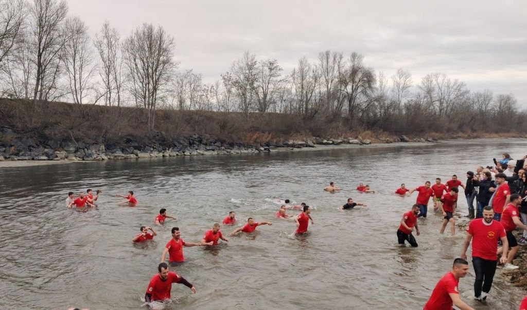 Sulla riva, affollatissima si è celebrata la Litania della Teofania, a cui ha fatto seguito la calata della Santa Croce. Nelle acque è stato lanciato un crocifisso in legno decorato ed un gruppo numeroso di persone si è tuffato nelle acque gelide, recuperandolo.