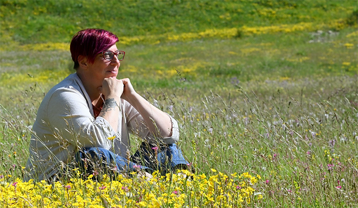 Cinzia Dutto, 49 anni, scrittrice e blogger. La sua passione per la montagna nasce dall’infanzia; il nonno, un partigiano, aveva una baita nelle valli piemontesi. Dice di sé : “Non ho mai fatto vacanze al mare: finita la scuola, si saliva con la famiglia in Valle Stura e si restava tutta l’estate; lì ho vissuto momenti indimenticabili, che hanno plasmato il mio amore per quei luoghi.”