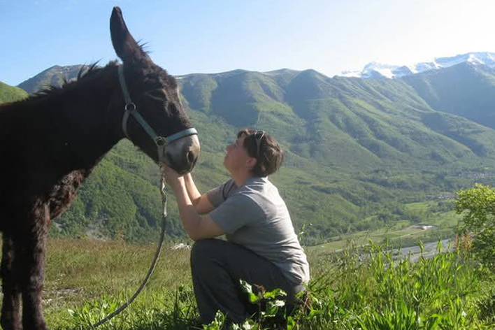 Quando la montagna è diventata un elemento imprescindibile?Il momento decisivo è stato quando ho scelto di trasferirmi a vivere in baita. Per anni era solo il rifugio dei weekend, ma mi sentivo così bene che ho deciso di farne casa mia. Ho vissuto a oltre 1200 metri s.l.m, nelle valli di Borgo San Dalmazzo in provincia di Cuneo; in quel periodo lavoravo con la PET Therapy, occupandomi di ragazzi diversamente abili. Poi ho iniziato ad interessarmi al mondo degli asini e ho aperto una “asineria”, per attività riabilitative e di trekking. Mi chiamavano la “ragazza degli asini” perché vivevo davvero come Heidi, in una struttura che comprendeva agriturismo, stalle e una ludoteca. Sono stati 12 anni intensi e ricchi di significato.