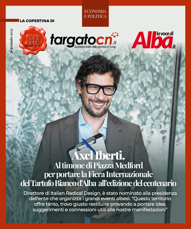 Classe 1979, studi in architettura, nato a Canale ma albese da sempre, da tredici anni impegnato a fare crescere quel patrimonio della creatività italiana che grazie agli imprenditori Sandra e Charley Vezza è atterrato in Langa sotto le insegne del gruppo "Italian Radical Design" (da poco vi ha assunto il ruolo di "design curator") e dei suoi storici marchi Gufram, Memphis Milano, Meritalia. "Felicemente sposato" con Giorgia, ("la donna più fantastica del mondo", sottolinea), e padre di due bimbi di 9 e 5 anni, appassionato di sci e bicicletta. Da lunedì 20 gennaio Axel Iberti è il nuovo presidente dell’Ente Fiera di Alba.