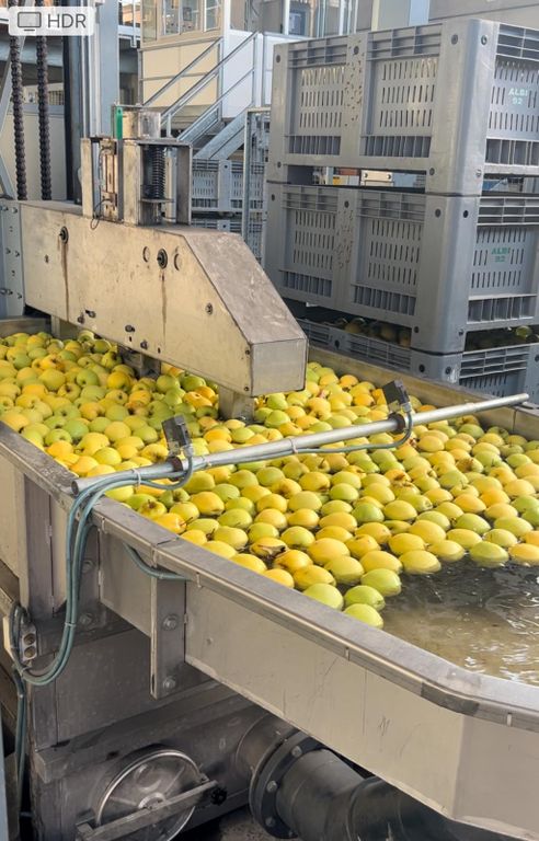 Abbiamo rimesso in lavorazione un macchinario, di cui sono molto orgoglioso, che movimenta le mele in acqua, impedendone inutili e antiestetiche ammaccature.