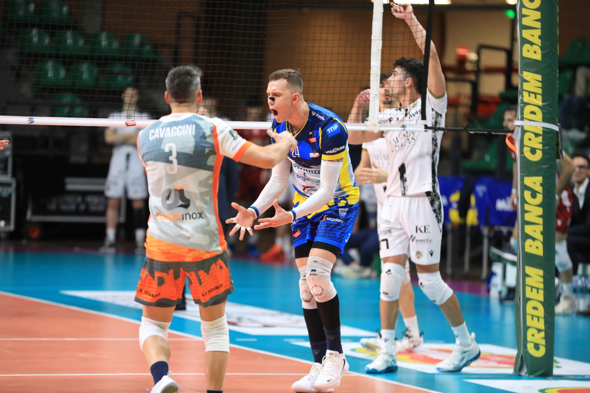 Dall'altra parte della rete, dopo un primo set nel quale tutta la squadra ha faticato, sono prepotentemente saliti di rendimento Randazzo, autore di una grandissima prova (53% su 32 attacchi), insieme con l'opposto Nelli. Su tutti ha vegliato l'ottima regia del francese Nevot.