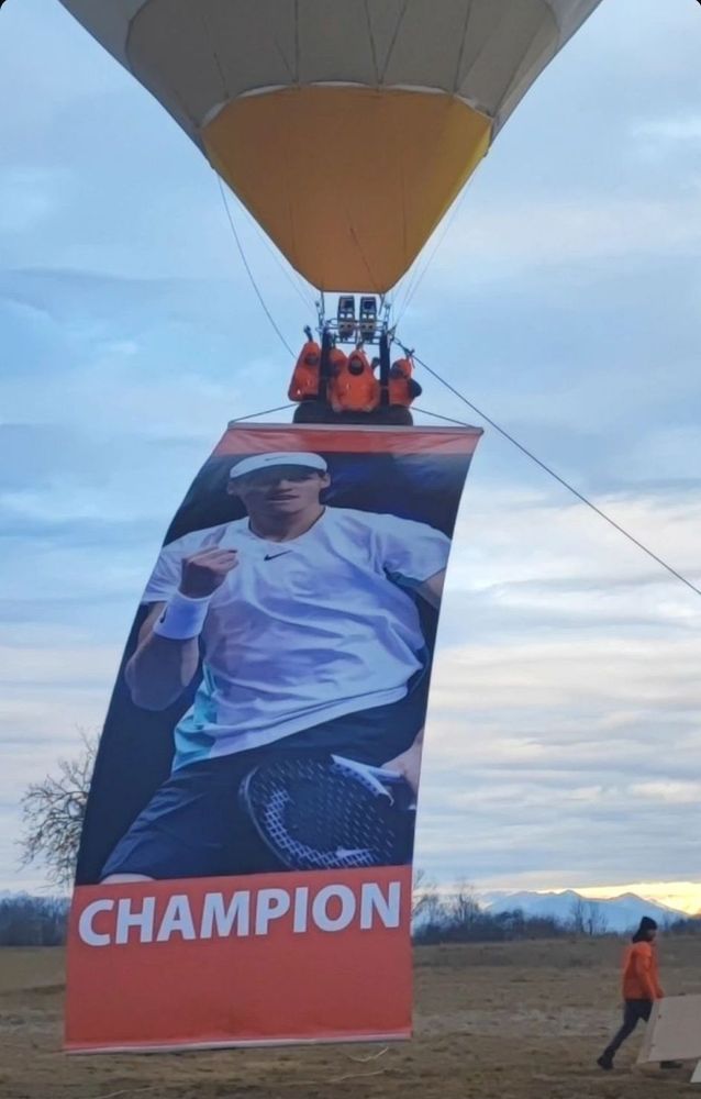Dopo la nuova, ma non scontata, vittoria del loro campione del tennis Sinner, i Carota Boys volano nei cieli di Mondovì con un lungo striscione appeso alla mongolfiera. E' questa la loro nuova impresa in omaggio al traguardo raggiunto dal giovane campione oggi sulla terra rossa.