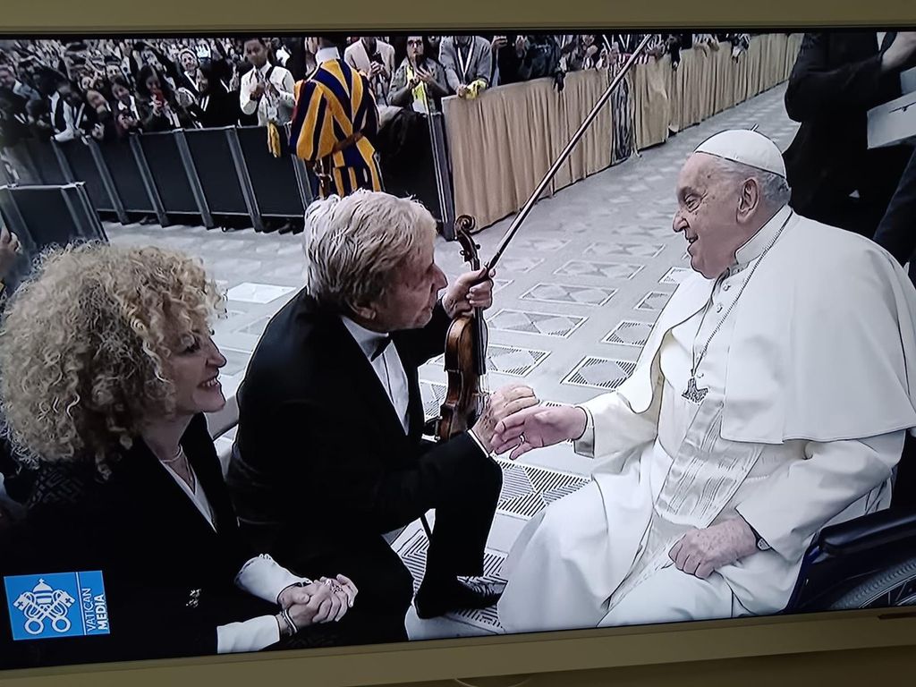 Nelle immagini il racconto del privilegio per gli ospiti seduti in prima fila tra cui Natascia Chiarlo e il maestro Ughi per il saluto del Papa, un momento di commozione, culmine di un lungo lavoro organizzativo svolto a più mani tra la Santa Sede e gli ospiti intervenuti.