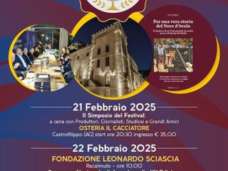 Il 22 febbraio si svolgerà il XX Convegno di Ampelografia presso la Fondazione Leonardo Sciascia di Racalmuto, incentrato sul libro dedicato alla storia del Nero d’Avola. Partecipano autorità locali, membri del Comitato Scientifico del Festival, tra cui esperti come il Dott. Rosario Lentini e il Dr. Luigi Salvo, oltre a giornalisti e ospiti del settore.