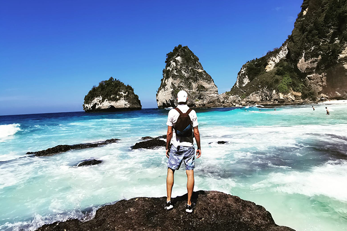 Ho deciso di suddividere il viaggio in tappe, per vivere ogni aspetto dell’isola. Sono partito da Ubud, che è il cuore spirituale e culturale di Bali, dove ho respirato un’atmosfera di pace tanto attesa; cascate e templi sono stati una cornice meravigliosa, per vivere momenti d’introspezione unica. Dopo, mi sono spostato a Nusa Penida, una piccola isola vicina, famosa per i suoi panorami selvaggi e le scogliere spettacolari come la famosa “T-Rex”. Si chiama così perché dall’alto, la forma, ricorda una gigantesco scheletro preistorico, la sensazione di essere li è stata suggestiva e quasi intima. Infine, sono tornato sull’isola principale, a Kuta, per concludere il viaggio in un’atmosfera più vivace e frizzante, perfetta per conoscere anche l’altro lato del Paese.