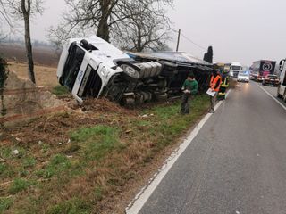 Incidente stradale, senza conseguenze per l'autista del camion coinvolto, nelle prime ore di stamattina nei pressi di Pollenzo.