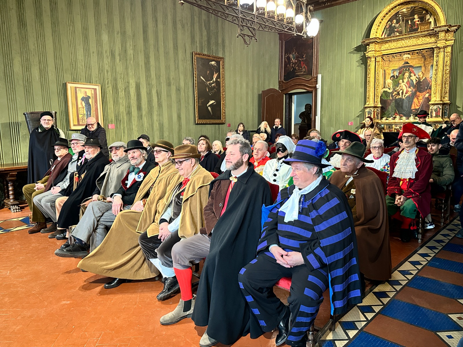 Il sindaco di Alba Alberto Gatto, affiancato dal presidente del Consiglio comunale Maurizio Marello e dall’assessora alla Cultura Caterina Pasini, ha accolto sabato 15 febbraio, nella sala consiliare “Teodoro Bubbio”, le maschere del Carlevé benéfich a cura dell’associazione Famija Albèisa.