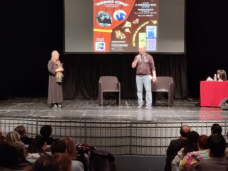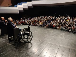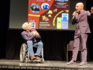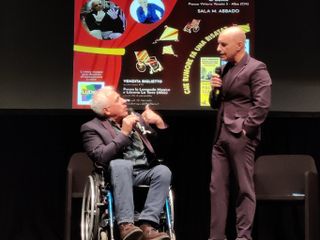 Il duo Lello Marangio/ Lino Barbieri ha poi replicato la performance in serata, davanti ad una folta platea: irriverenti, dissacranti, autoironici i due artisti hanno divertito e portato all’attenzione le tante contraddizioni che contraddistinguono il mondo della disabilità, soprattutto quando ad occuparsene sono i cosiddetti “normali”.