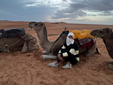 Nel tardo pomeriggio siamo finalmente arrivati a Merzouga, la porta del Sahara. Abbiamo lasciato il pulmino e siamo saliti sui dromedari, iniziando la traversata tra le dune di Erg Chebbi. Il tramonto ha trasformato la sabbia in un mare di sfumature arancioni e dorate, mentre il silenzio assoluto del deserto ci avvolgeva. Dopo una cena berbera squisita, la serata è proseguita con una festa intorno al fuoco. I tamburi hanno iniziato a suonare, i musicisti hanno intonato canti tradizionali e in pochi minuti ci siamo ritrovati a battere le mani e a ballare sotto il cielo stellato. Abbiamo riso, cantato e ci siamo lasciati trasportare dal ritmo ipnotico della musica Gnawa, prima di ritirarci nelle nostre tende, cullati dalla magia del deserto. Il mattino dopo, sveglia presto per ammirare l’alba sulle dune; il cielo, inizialmente scuro, si è pian piano illuminato di sfumature rosa e dorate, mentre il sole spuntava all’orizzonte. Il silenzio era assoluto, rotto solo dal vento che accarezzava la sabbia. Dopo aver fatto colazione nel campo, ci attendeva l’ultima avventura in 4x4. Saliti a bordo, abbiamo saltato sulle dune, fermandoci in un piccolo villaggio nomade. Qui, abbiamo incontrato famiglie che vivono ancora secondo le tradizioni del deserto, accogliendoci nelle loro tende, ci hanno offerto il tè e raccontato le loro storie. Una vita in viaggio, adattandosi alle difficili condizioni del Sahara! La loro esistenza, semplice ed autentica, mi ha ricordato quanto sia preziosa la connessione con la natura e con le proprie radici.